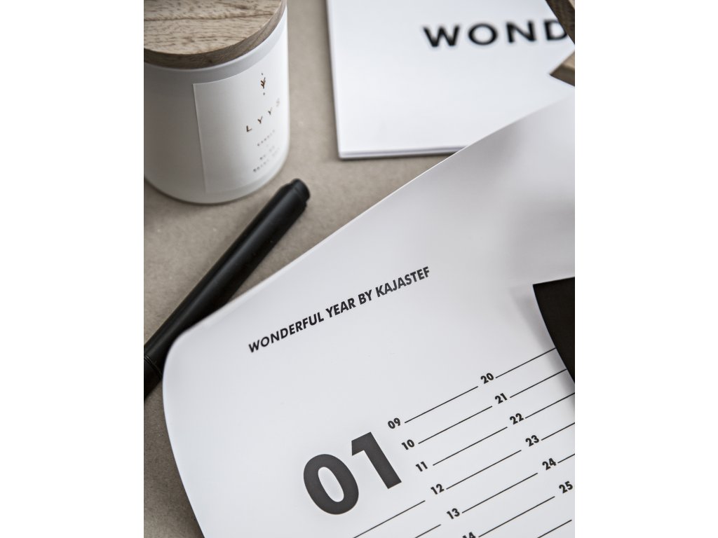 Základní bílé provedení může být vsazeno do barevného orámování, a tak je kalendář k dispozici i ve verzi caramel, maroon a greige. Není problém vyrobit na zakázku i barevné provedení na přání s kteroukoliv barvou tohoto roku. Kombinace je jen na vás:)